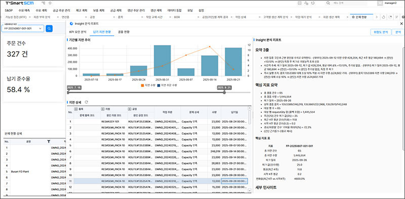 [이미지]티큐브인사이트 생산계획 문제현황 분석 화면